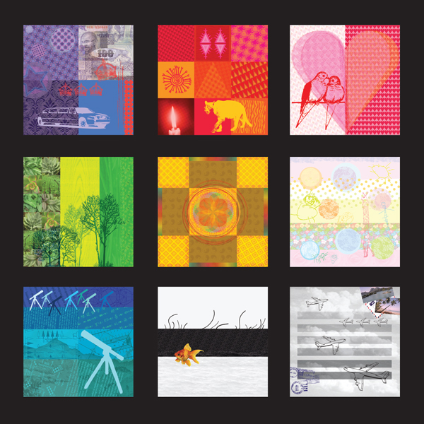 Each square represent a life situation or aspect of life, and has its own elements – unique colors, shape, materials and symbols.